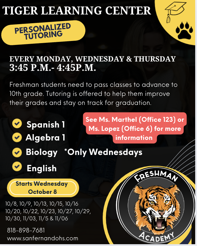 9th Grade Tutoring - Mondays, Wednesdays and Thursdays/Tutoría de 9.o grado: lunes, miércoles y jueves